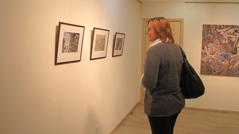 Ви зараз бачите роботи у вечірній час. Пропоную вам прийти на виставку, коли приходять сутінки, коли світить сонце, коли похмурий день – і кожного разу будете бачити, що роботи змінюються…