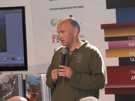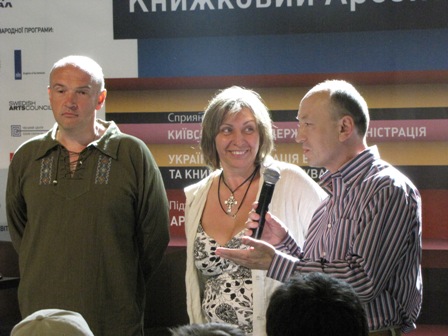Я хотів би представити організаторів цієї події. Алла Маричевська, котра якраз і була стрижнем, на який це все накручувалося. Пан Микола Скиба – автор передмови, заступник директора Національного художнього музею України, арт-менеджер. Також хочу представити Наталку Примаченко, яка представляє видавництво «Скай-Друк», пані Ірину Ончукову – виконавчого директора галереї «АВС-арт», Мирославу Крат – завідувача українських літер – та Вікторію Шупікову – завідувача англійських літер.