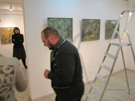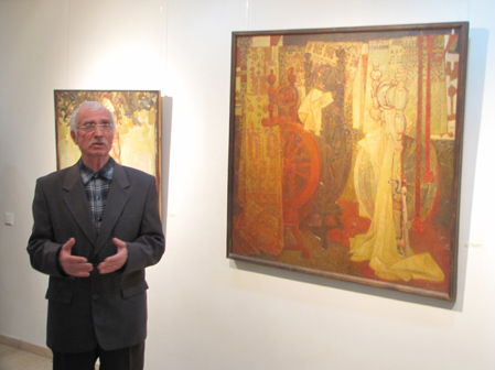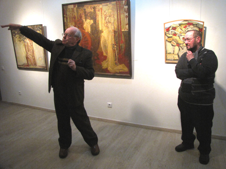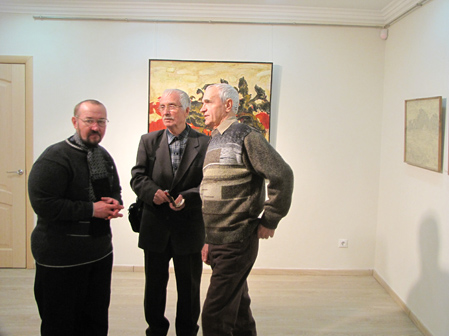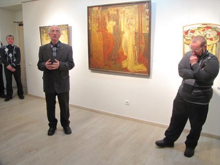 Я вдячний, що прийшло так багато дорогих для мене людей. Дякую галереї й пані Аллі, оскільки ця виставка сталася несподівано. Після виставки «Від Трипілля до сьогодення…» був від неї дзвінок. Хоча ми давно знайомі, я спитав, звідкіля ж номер телефону. Виявляється, друзі хороші здали (сміється). Її веселий гарний голос спонукав мене сказати, що я згоден. Коли ж розмова закінчилася, я натиснув кнопку і подумав: а на що ж я згоден, що ж робити, це ж не так просто, це ж треба готуватися до виставки?! Потім був певний період роботи, який закінчився тим, що ви бачите на стінах. Вибачте за ретроспективність. Я міг би виставити лише останній рік, але так мені здалося цікавіше. Зрештою, як казав покійний Михайло Никонович Москаленко, прошу зважити на думку автора.